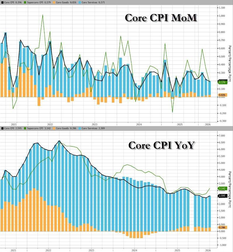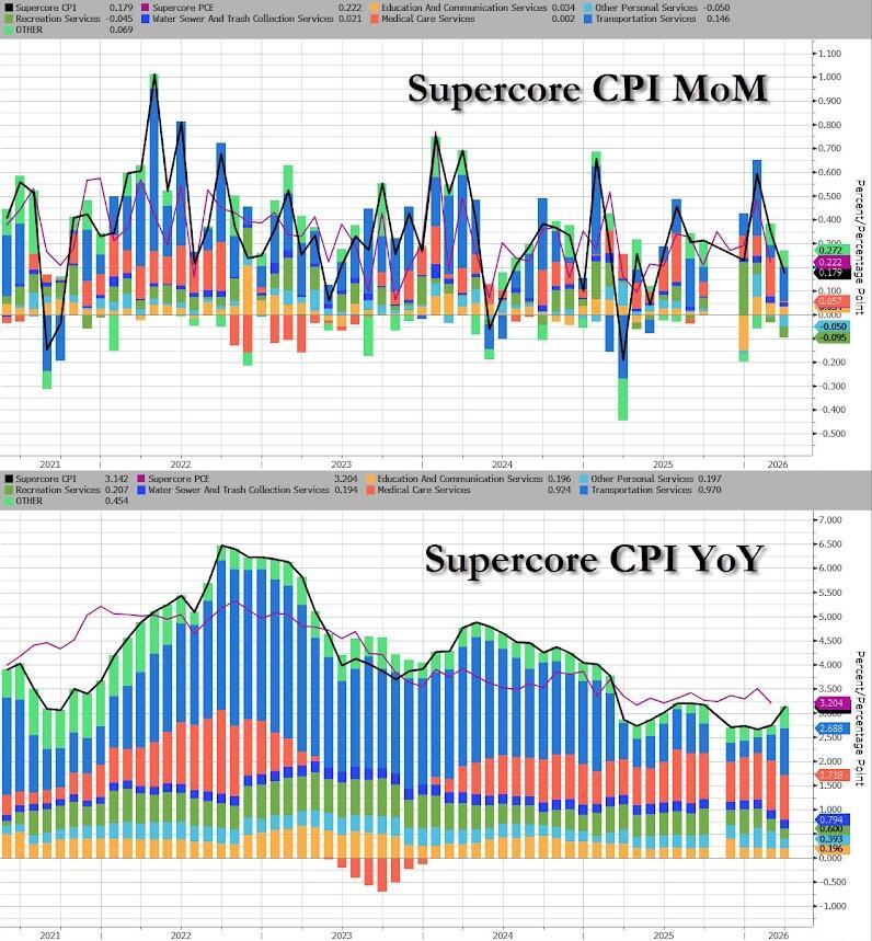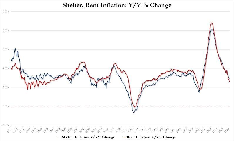 Shelter inflation up 0.4% MoM, biggest monthly increase since Jan 2025. also up 3.02% YoY, first annual increase since Sept 2025