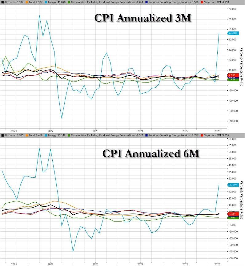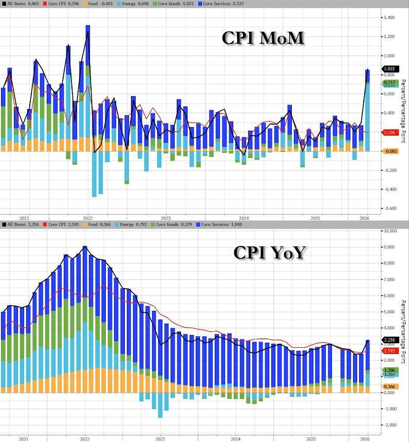 While PCE showed some signs of higher energy prices leaking into inflation prints, it was still February data. As we previewed, today's CPI data is for March and will bear the full brunt of the Iran War's impact on energy costs after Core CPI fell to its lowest in four years in February.