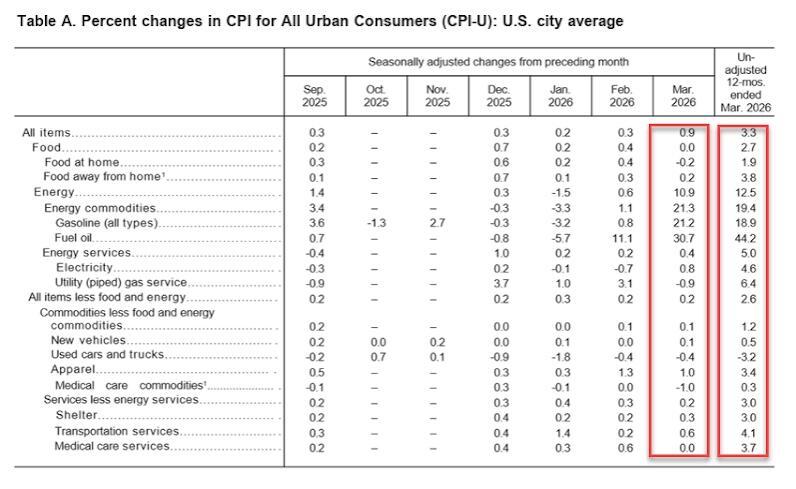 Core CPI rose 3.3% YoY for the 12 months ending March, after rising 2.4% in February. The all items less food and energy index rose 2.6% over the year, following a 2.5% increase over the 12 months ending February. The energy index increased 12.5% for the 12 months ending March. The food index increased 2.7% over the last year.
