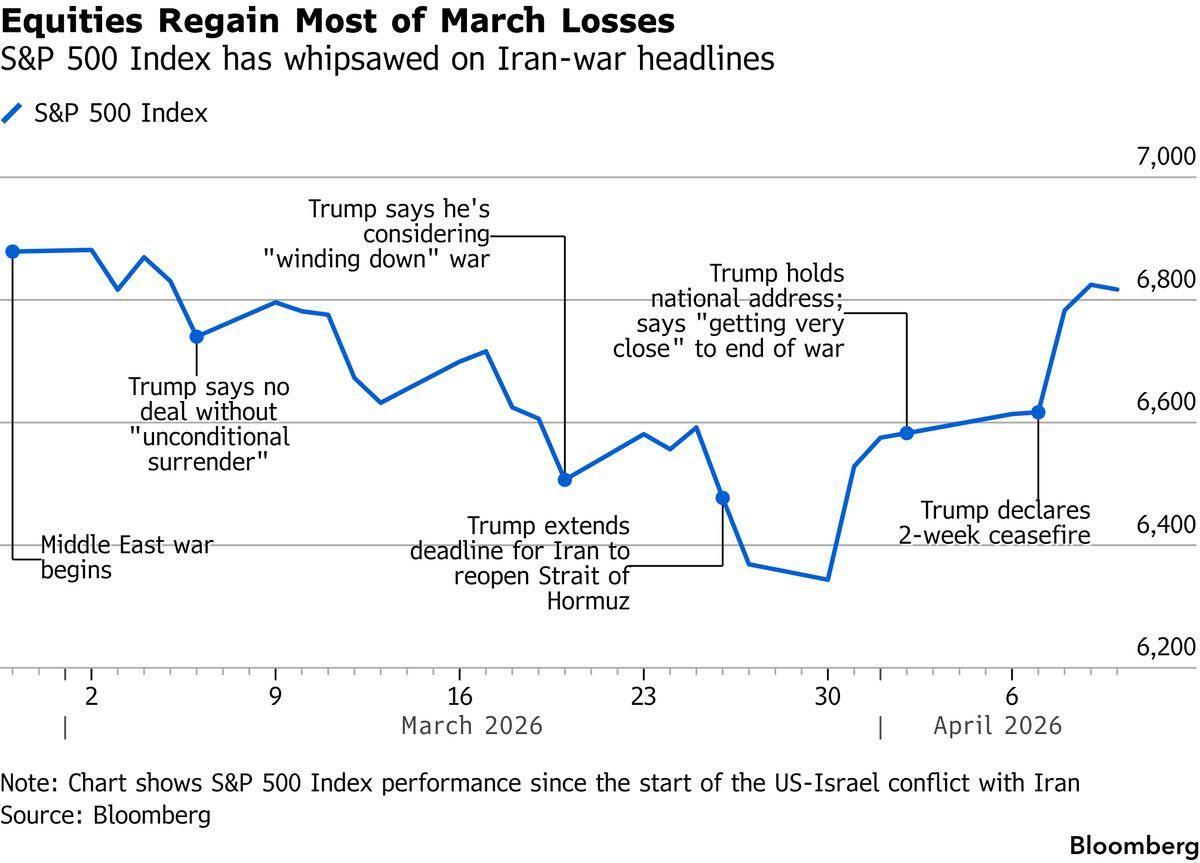 Recapping last week now, markets put in a strong performance overall, as the two-week ceasefire led to growing optimism about a de-escalation pathway in the Middle East. So that drove a significant decline in oil prices, with Brent crude down -12.68% last week to $95.20/bbl, marking its biggest weekly decline since June. And in turn, that significantly eased fears about a potential stagflationary shock, leading to a global rally across multiple asset classes.