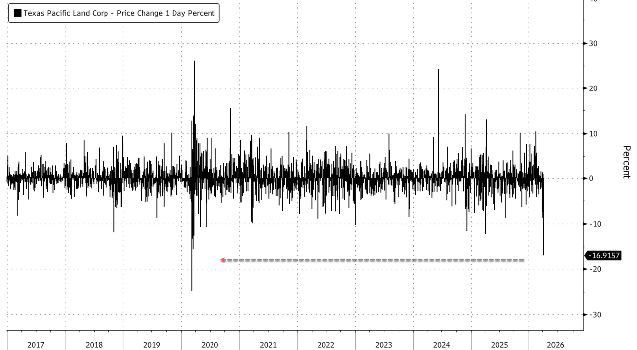 Land-and-royalty company Texas Pacific Land Corp. crashed the most since early Covid after the head of its largest shareholder unexpectedly died.