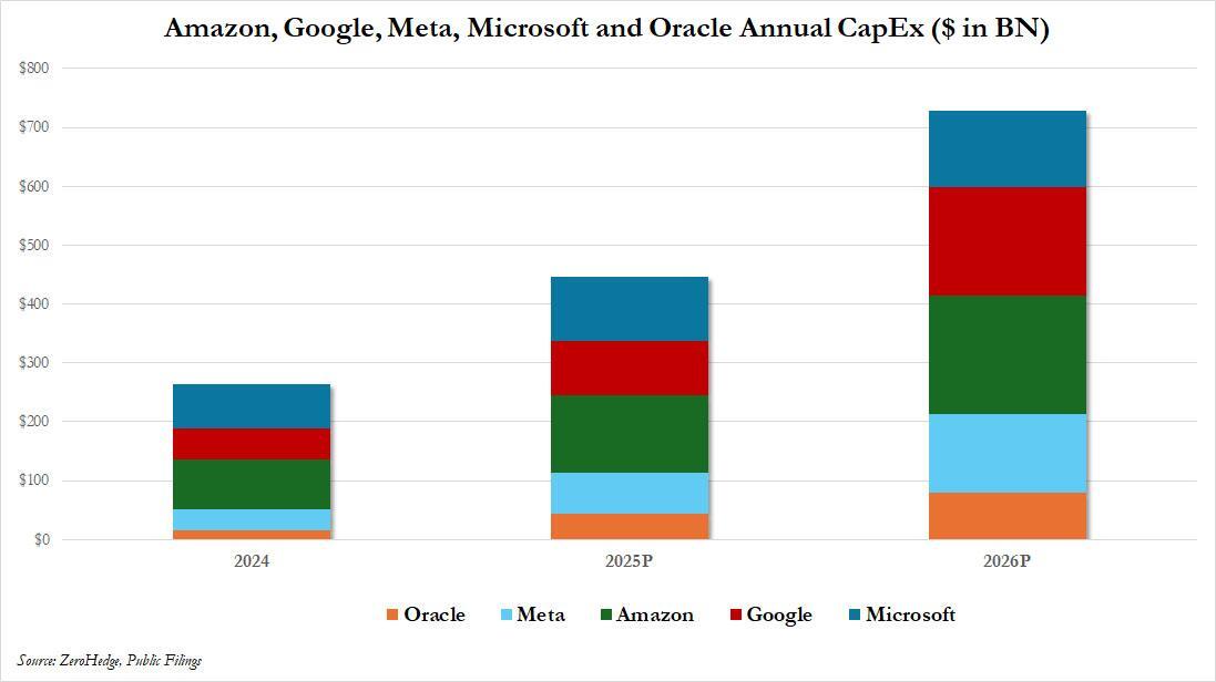 Oh, and there is the question of who pays for all this: by now everyone knows about the hundreds of billions in capex the hyperscalers will spend over the next few years.
