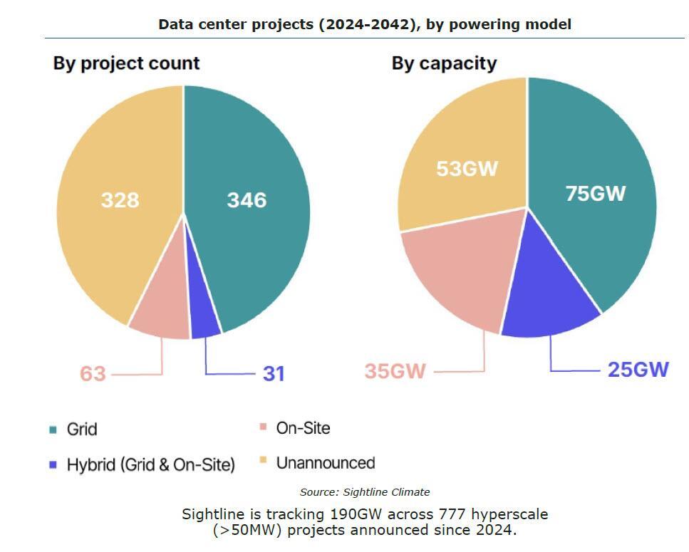 But while one can pretend the future is irrelevant, the same limitations are visible in the here and now: according to the SightLine report, "at least 16GW of data center capacity is slated to come online this year across 140 projects. 53% will be grid connected, 3% will be powered solely by on-site power, and 25% have not disclosed their powering strategies. We expect 30-50% of these projects to be delayed. Only 5GW is currently in construction."