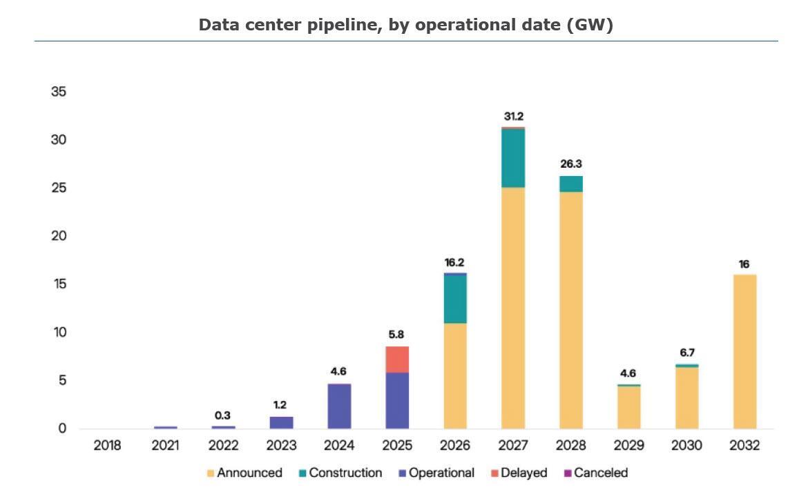 "We expect 30-50% of 2026 projects to be delayed, driven by power constraints (25% of projects have not disclosed powering strategies), increasingly effective community opposition, and potential grid equipment shortages. 11GW of 2026 capacity remains in the announced stage with no signs of construction, despite typical build times of 12 to 18 months. Itʼs still possible for this capacity to come online, but it would need to dramatically accelerate."