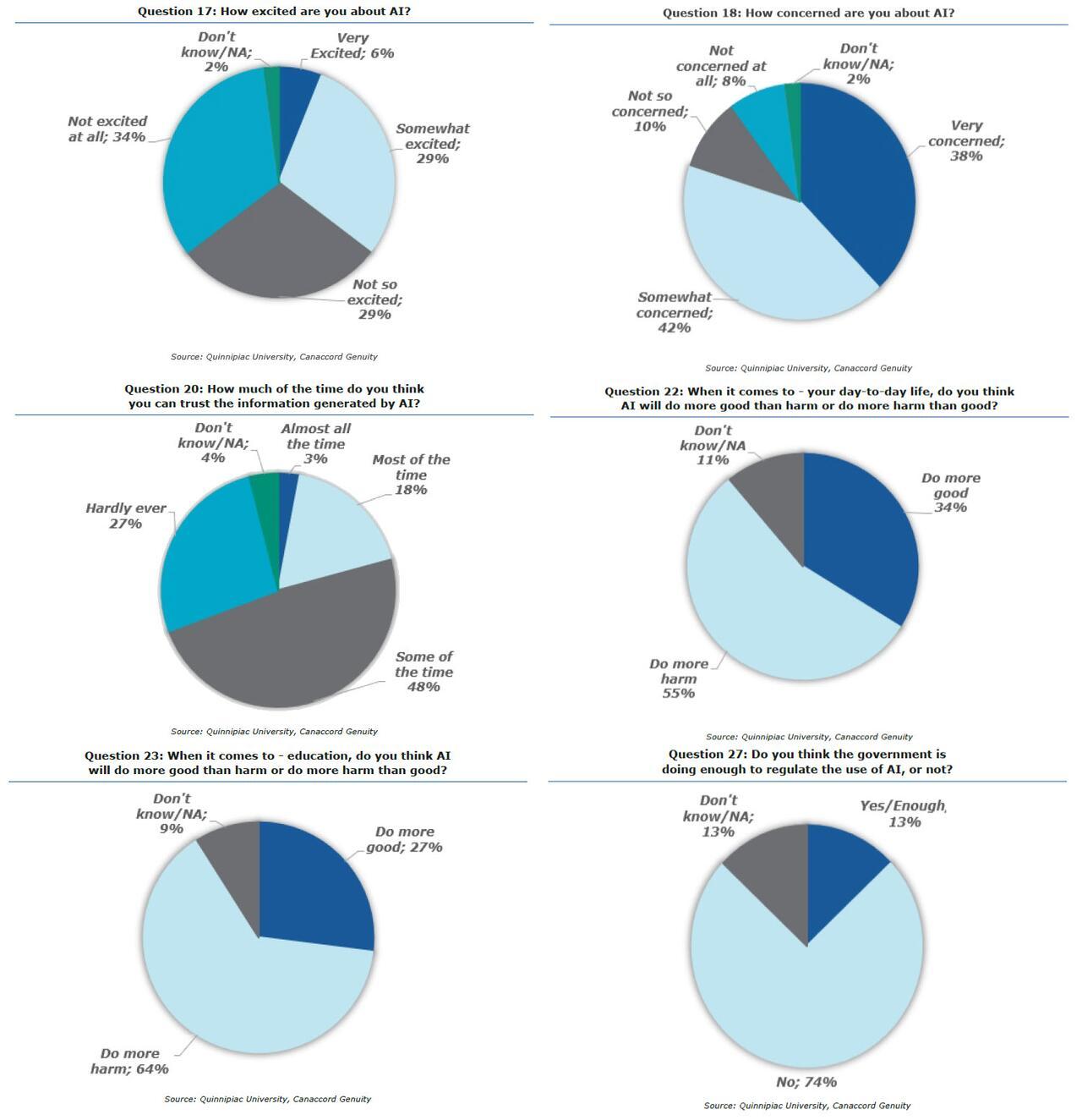 Sure enough, these institutional shifts arrive as a recent Quinnipiac University poll - which looked at AI use and its impacts on daily life, education and healthcare - confirmed the public is growing increasingly wary of AI’s deepening integration into healthcare, education, and daily life. Here are some of the findings showing just how rapidly public sentiment has turned against AI: