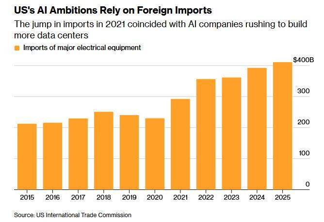 Here Bloomberg again quotes the Sightline data, noting that "almost half of the US data centers planned for this year are expected to be delayed or canceled" and as one big reason for the delay Bloomberg cites the shortage of electrical equipment, such as transformers, switchgear and batteries: "They are needed not just for powering AI, but also for building out the grid that is seeing increased consumption from electric cars and heat pumps. US manufacturing capacity for these devices cannot keep up with demand, and the scarcity has caused data center builders to rely on imports."